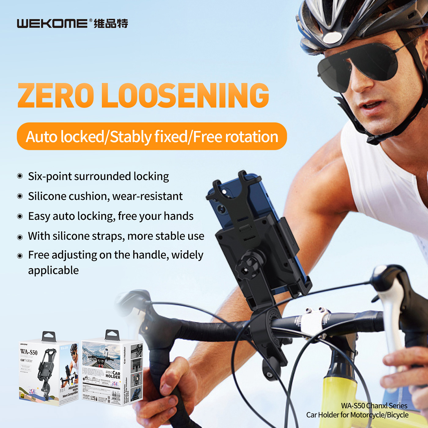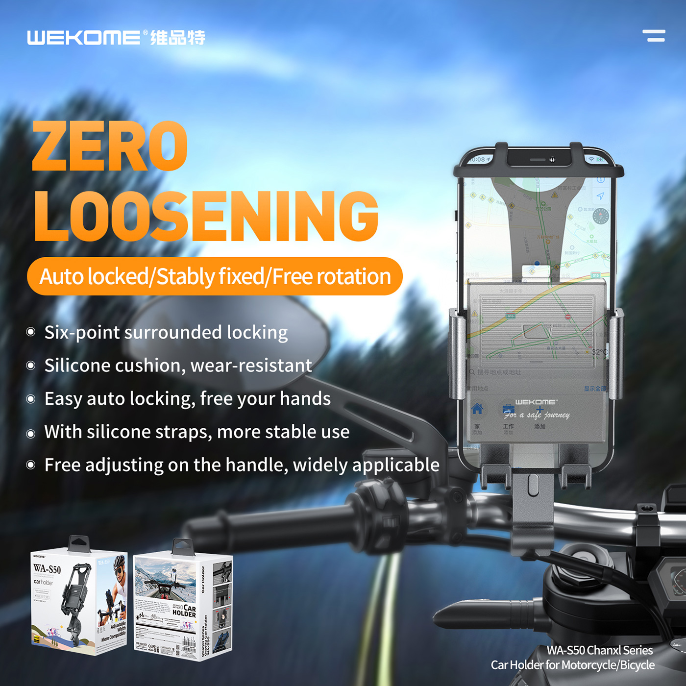 WA-S50 Gravity Phone Holder for Motorcycle & Bicycle
