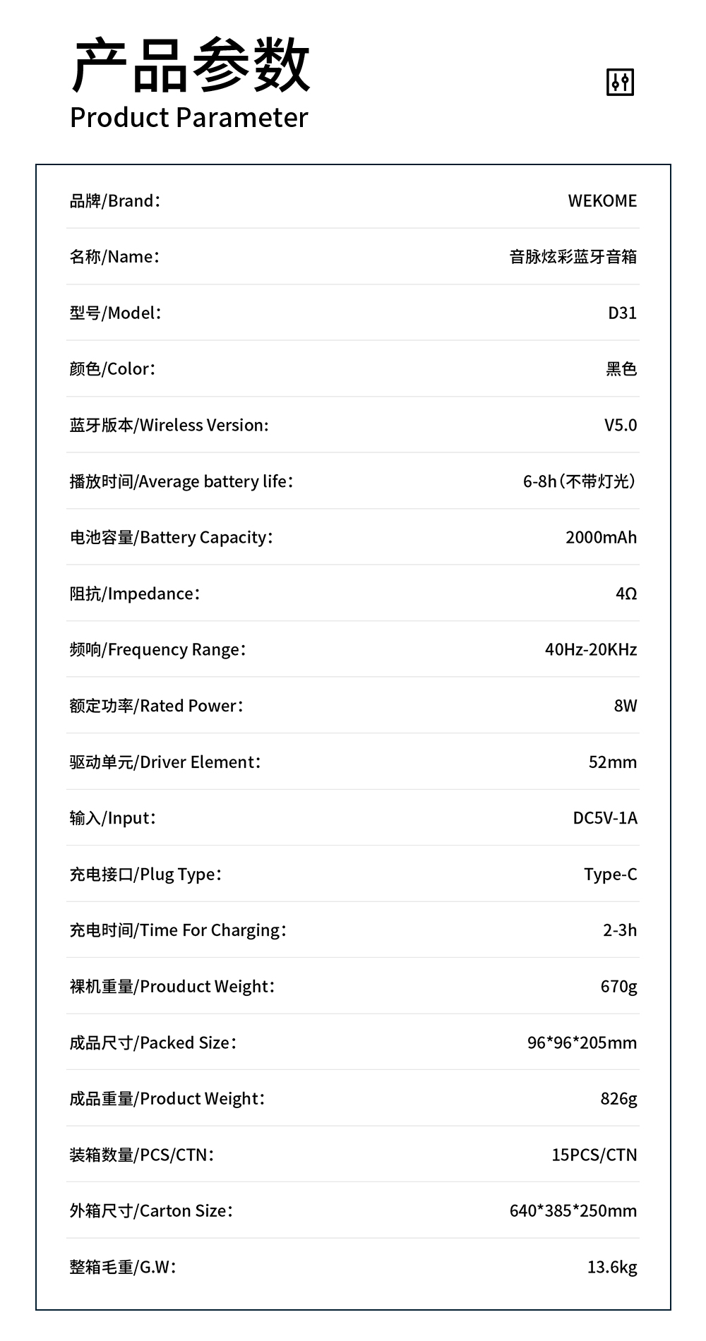 | Packed Size | 96*96*205mm |